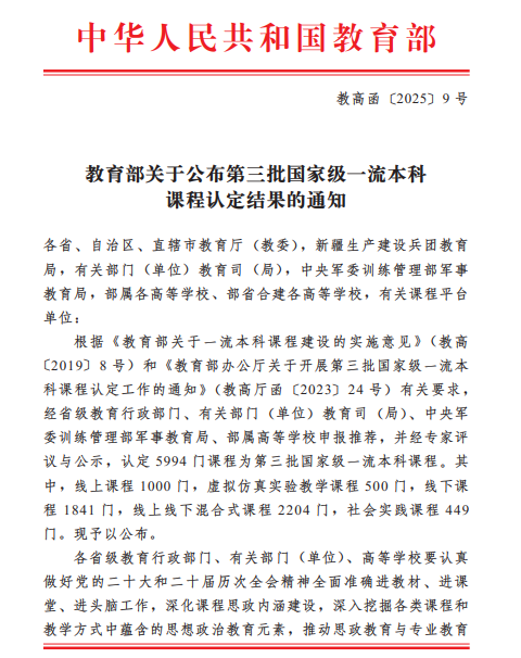 近日,教育部发布了《教育部关于公布第三批国家级一流本科课程认定结果的通知》(教高函〔2025〕9号),董玮老师负责的《数字电子技术》课程入选第三批国家级一流本科课程。该项荣誉不仅是对课程团队的肯定,更是学院持续推进本科教学能力建设的重要体现。学院将继续深化本科教育教学改革,推进智慧课程、思政课程、规划教材等教学资源建设,力争在国家级课程、教材、成果奖方面继续取得突破,为培养电子信息领域的拔尖人才筑牢根基。