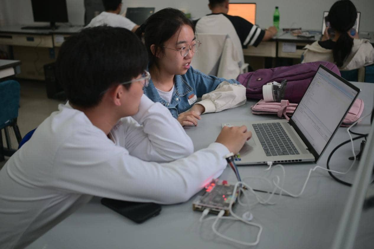 图3 ICDA团队组织的线下FPGA开发实训,团队成员进行手把手教学