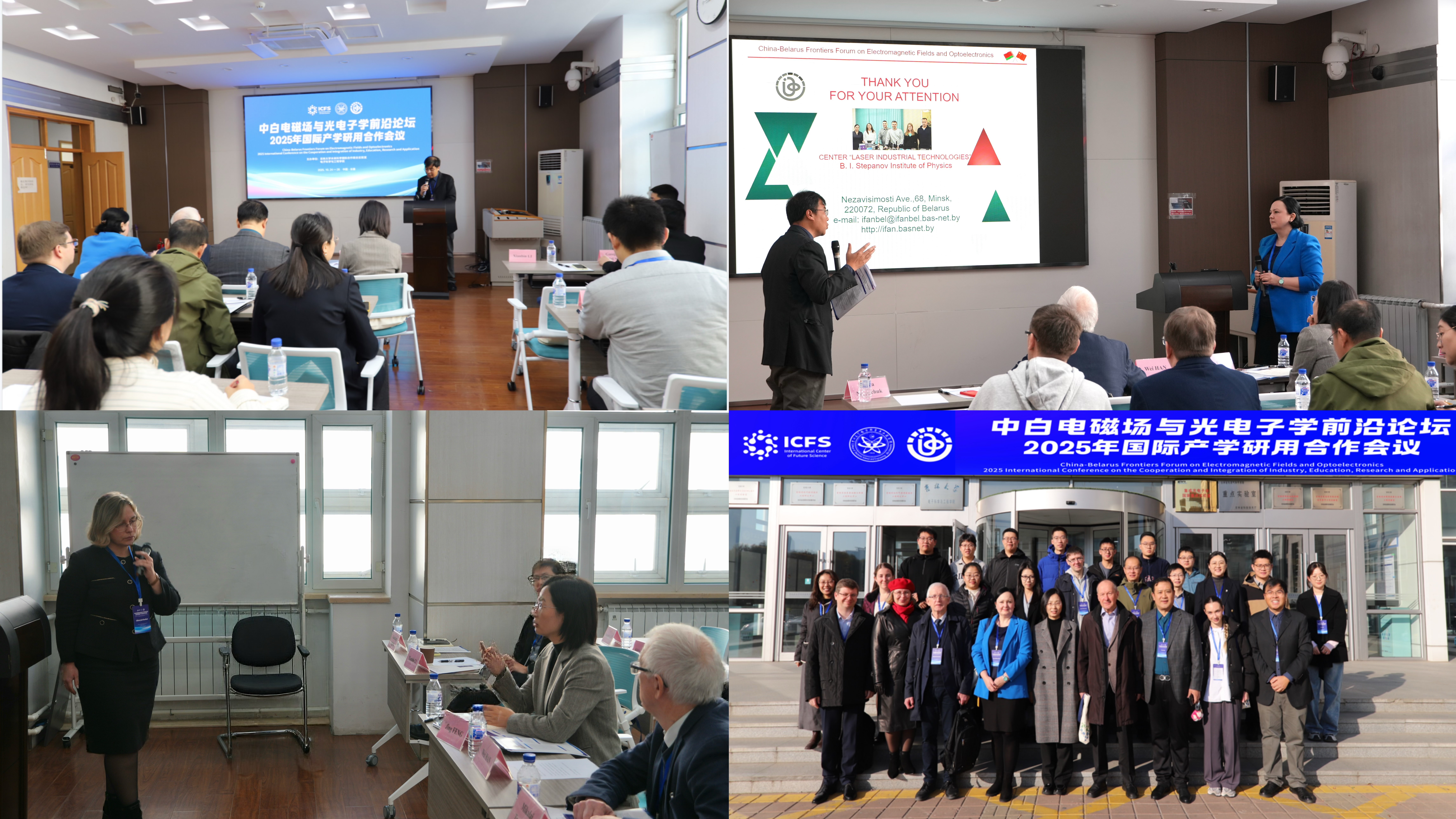 2025年10月25-26 日,中国-白俄罗斯电磁场与光电子学前沿论坛暨2025 年国际产学研用合作会议在电子科学与工程学院成功举办。本次会议由电子科学与工程学院与未来科学国际合作实验室联合主办,聚焦光电子学、电磁场等领域的前沿动态,为中白两国科研工作者搭建了高水平的学术交流与协同创新平台。